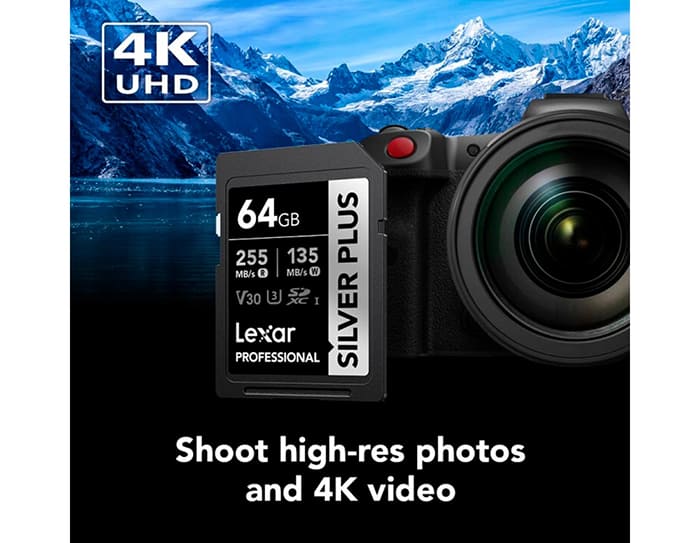 Thẻ nhớ Lexar Professional Silver PRO UHS-I U3 V30 64Gb sở hữu tốc độ đọc tối đa 255MB/s và tốc độ ghi lên đến 135MB/s